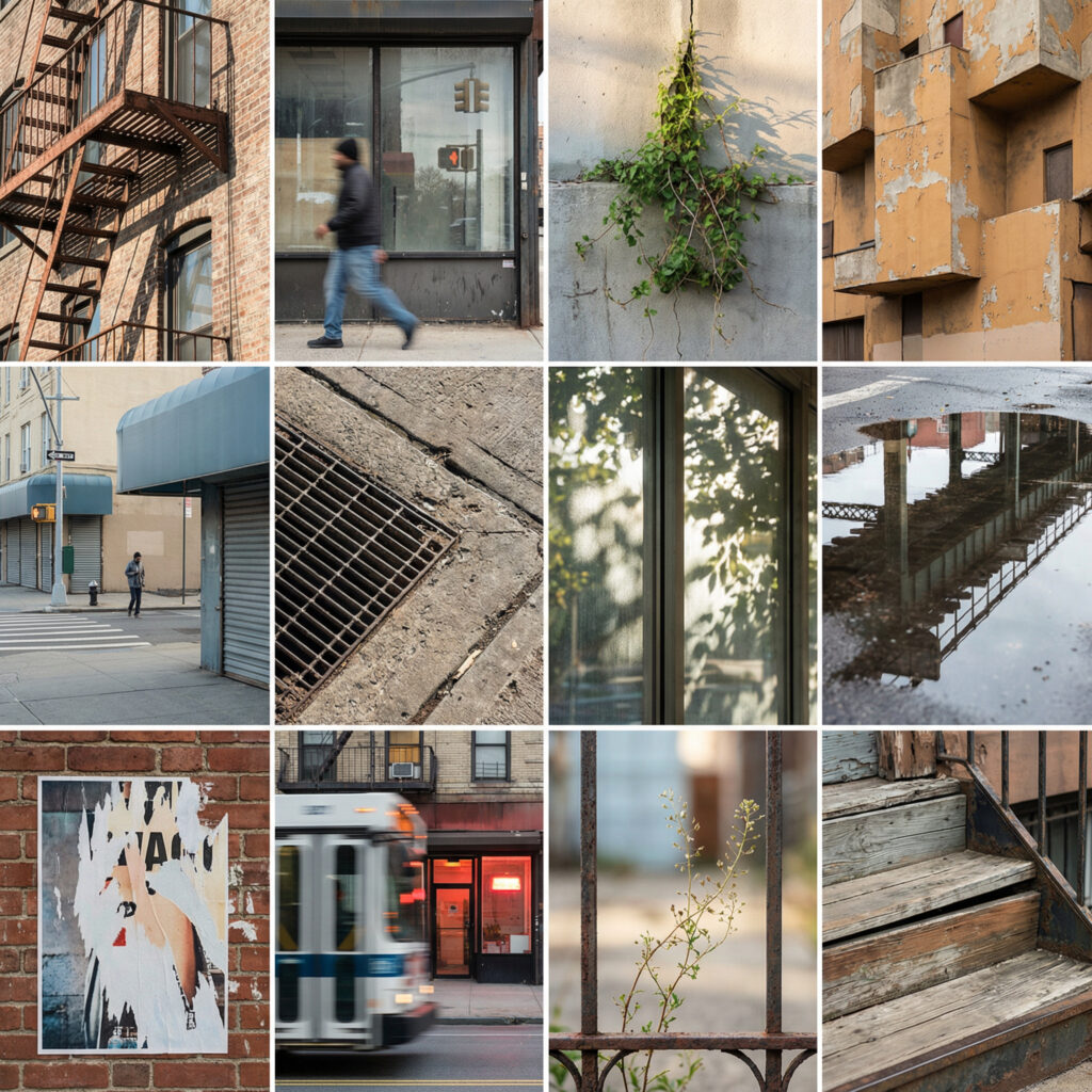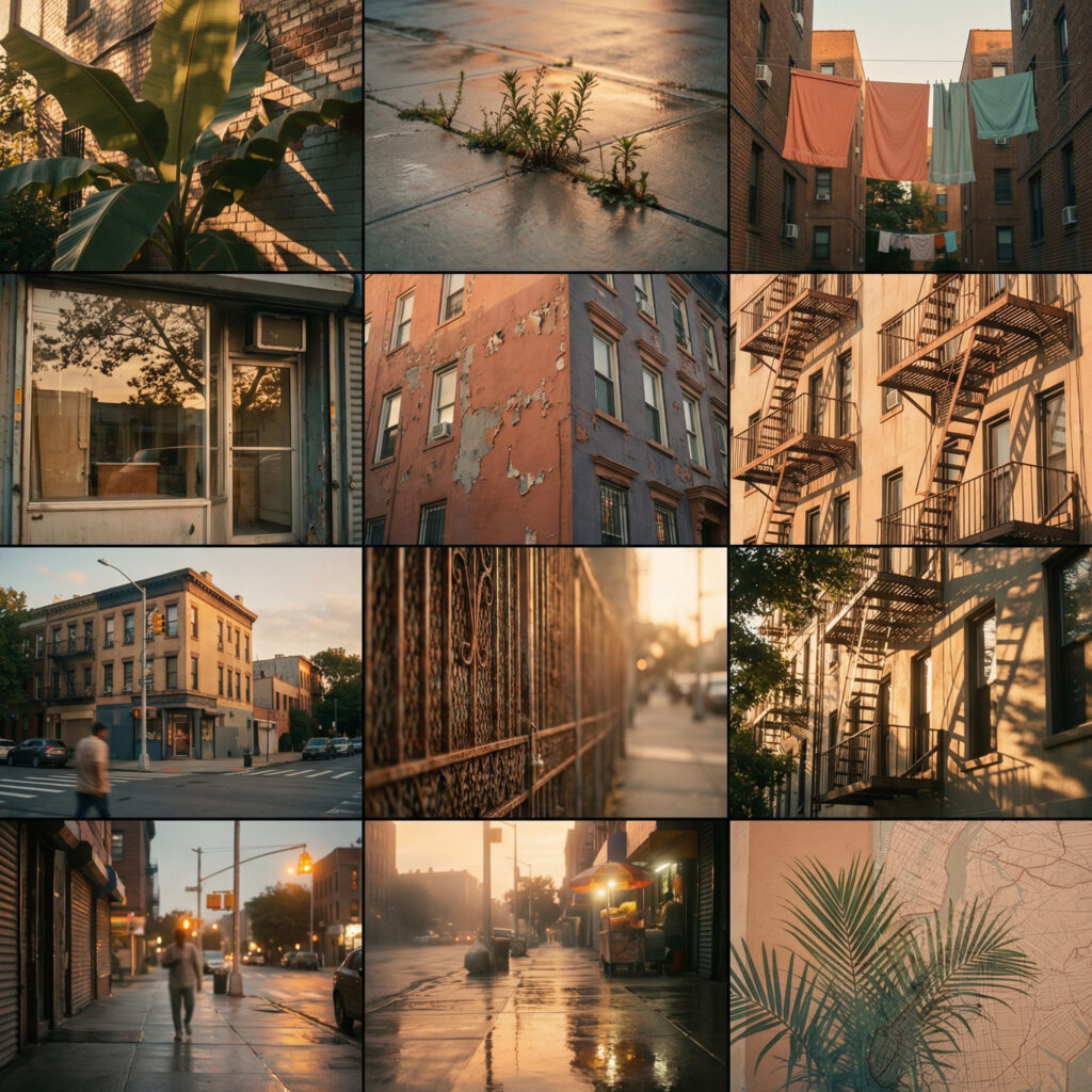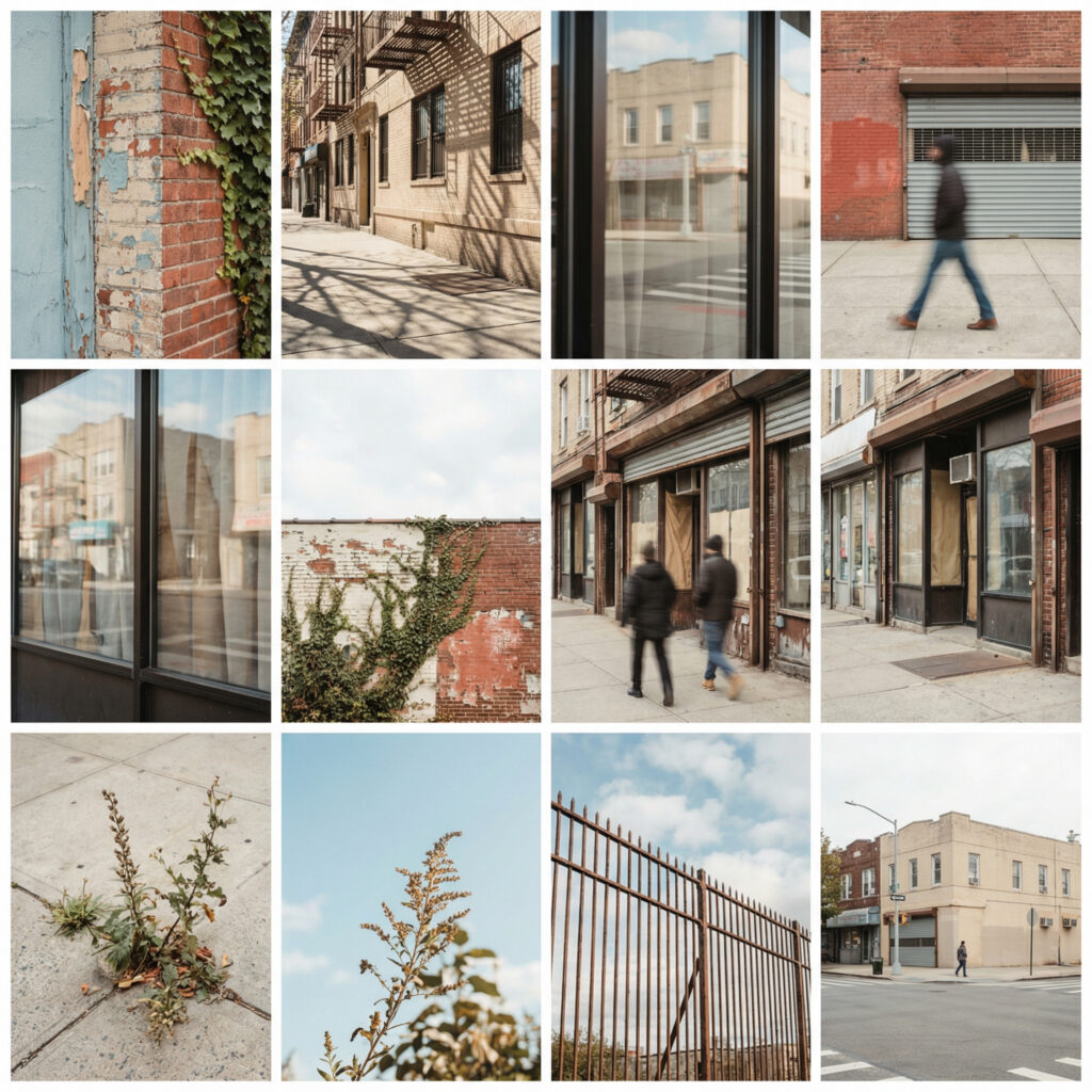 This body of work documents the streets of Queens, NY. Through a cinematic, fine art lens. Light, texture, and layered reflections shape each frame, blending botanical elements with urban geometry. The images move between observation and memory—confident in composition, restrained in color, and grounded in atmosphere. Together, they form a cohesive visual journal of place, movement, and quiet resilience.