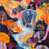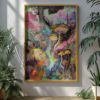 A vibrant and colorful landscape filled with whimsical creatures and plants in the style of a psychedelic garden! I created a series of scenes that includes natures’ totality: rivers, mountains, forests, clouds, stars, rainbows, plants, animals, patterns, etc. But the main inspiration were the Elephants. I wanted to give them a fantastical, psychedelic and surreal space.This is an abstract artwork that uses contrasting bold colors and patterns to create depth and texture. It has a dreamlike quality with soft lighting that casts gentle shadows on its surface. These are available in a variety of papers!Quick View -