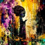 This vibrant artwork beautifully captures the essence of a mother’s inner world, symbolized by the rich, dynamic colors and textures that envelop her. The central figure, a mother, is depicted as a silhouette reading a book, suggesting her depth, wisdom, and the quiet moments of escape and self-care amidst her bustling life. The contrast between her calm, composed figure and the vivid chaos around her mirrors the complex role of motherhood—both grounding and challenging. The swirls of gold and bursts of purple and blues could represent the myriad experiences and emotions she navigates daily. This painting not only celebrates her resilience and beauty but also subtly nods to the intellectual and spiritual nourishment that sustains her.