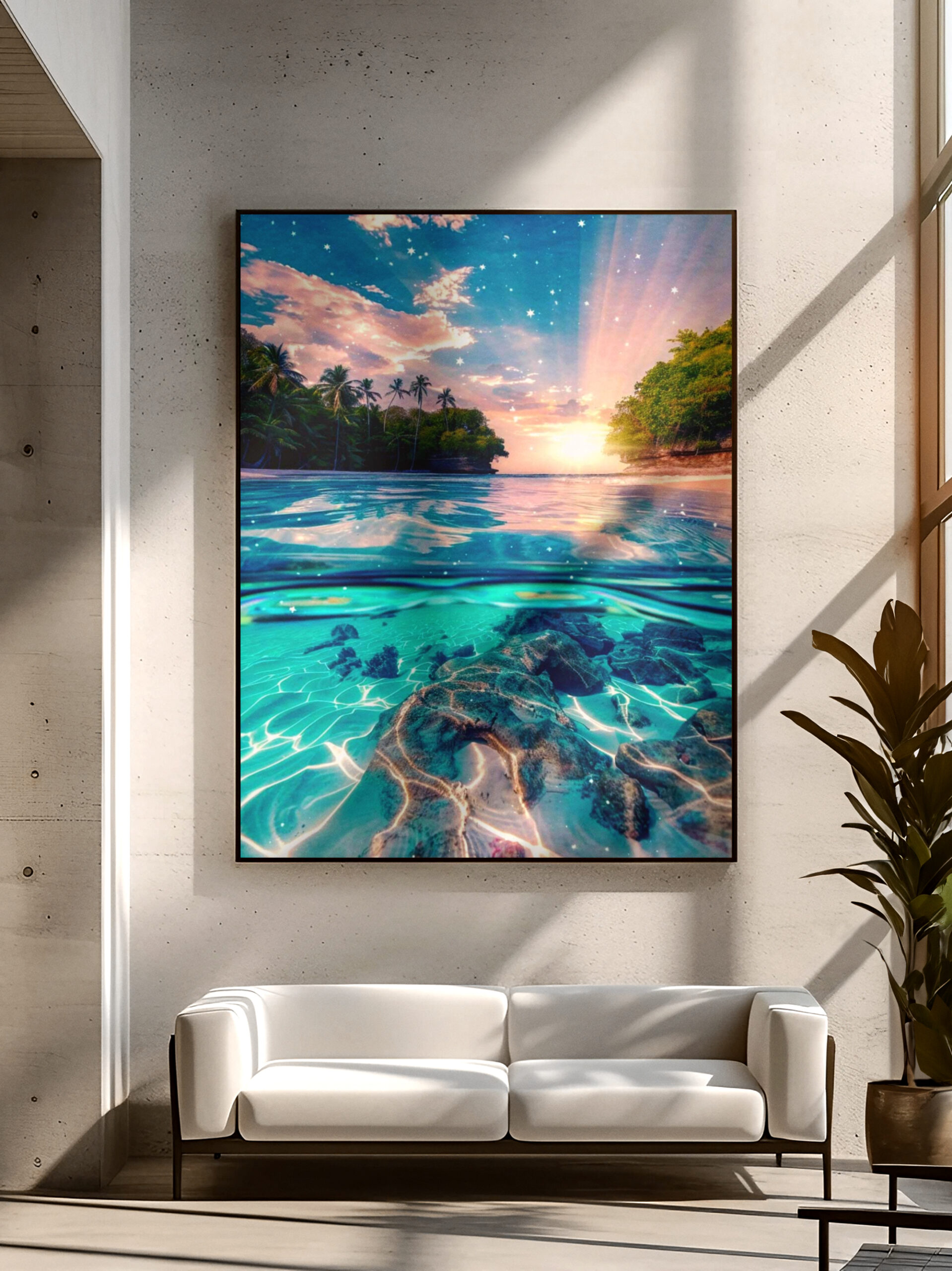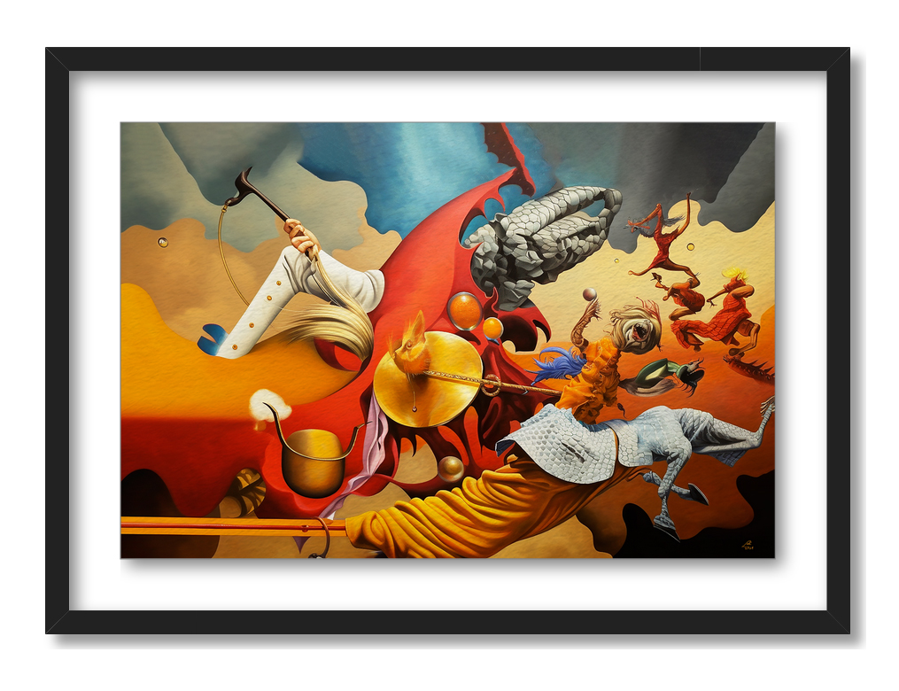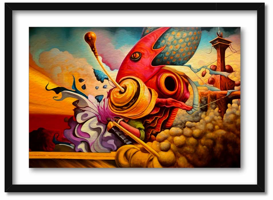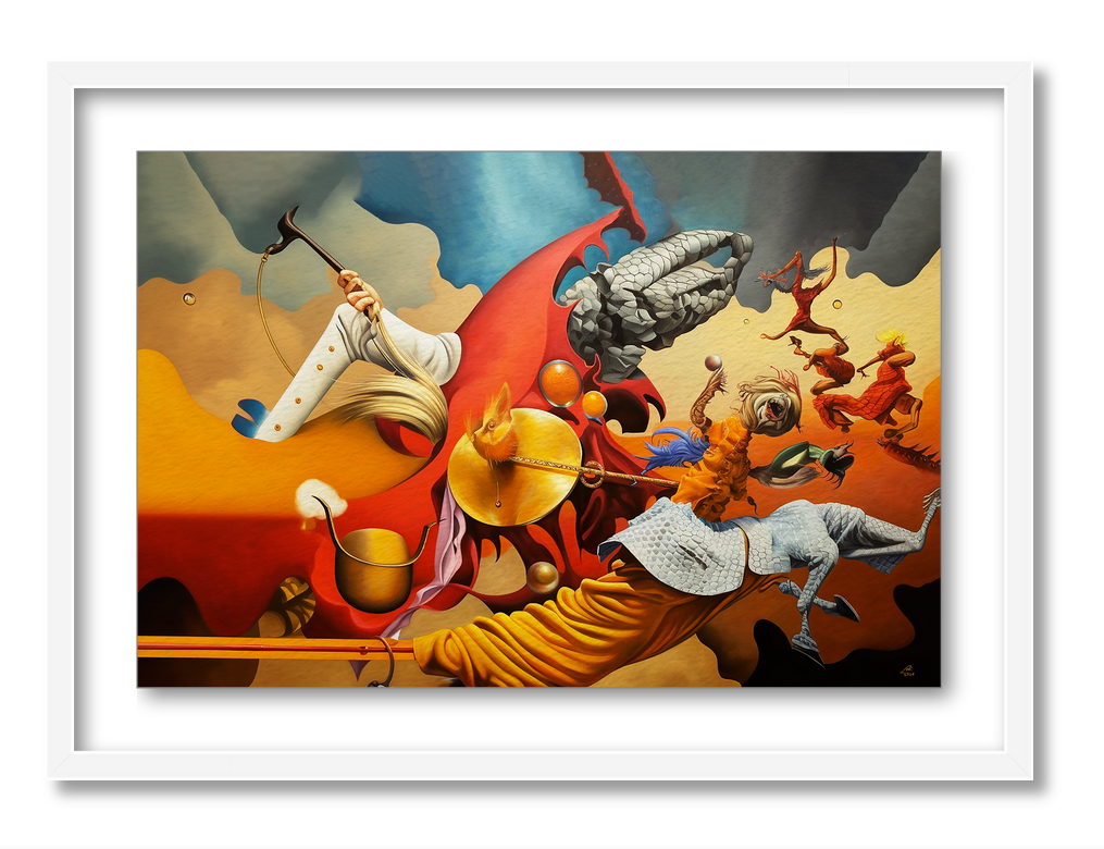 A vibrant and colorful landscape filled with whimsical creatures and plants in the style of a psychedelic garden! I created a series of scenes that includes natures’ totality: rivers, mountains, forests, clouds, stars, rainbows, plants, animals, patterns, etc. But the main inspiration were the Elephants. I wanted to give them a fantastical, psychedelic and surreal space.This is an abstract artwork that uses contrasting bold colors and patterns to create depth and texture. It has a dreamlike quality with soft lighting that casts gentle shadows on its surface. These are available in a variety of papers!Quick View -