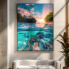 A vibrant and colorful landscape filled with whimsical creatures and plants in the style of a psychedelic garden! I created a series of scenes that includes natures’ totality: rivers, mountains, forests, clouds, stars, rainbows, plants, animals, patterns, etc. But the main inspiration were the Elephants. I wanted to give them a fantastical, psychedelic and surreal space.This is an abstract artwork that uses contrasting bold colors and patterns to create depth and texture. It has a dreamlike quality with soft lighting that casts gentle shadows on its surface. These are available in a variety of papers!Quick View -